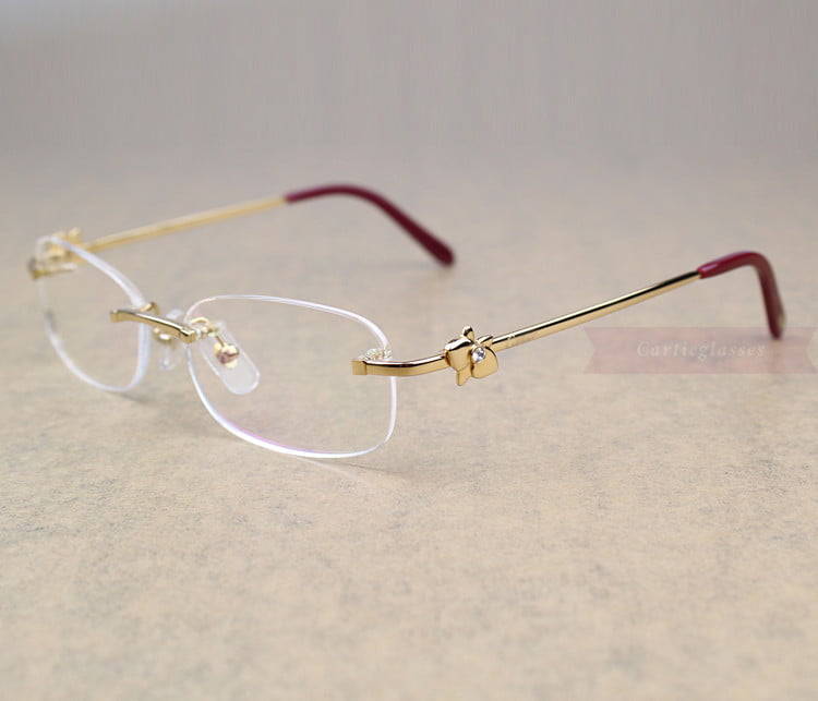 Cartier Eyeglasses Butterfly Decor Metal Rimless CT3893193